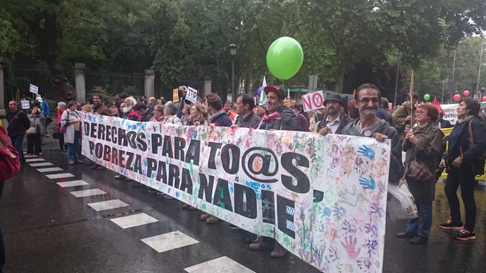 En esta ocasión, el Día Internacional para la Erradicación de la Pobreza coincidió con una manifestación contra el TTIP. Al finalizar el acto nos sumamos a ella, portando las banderolas y pancartas que los niños habían realizado durante la mañana, bajo el lema “Derechos para tod@s, pobreza para nadie”.