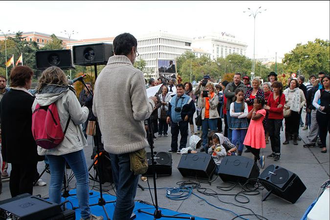 Por este motivo, C.P. San Carlos Borromeo, EAPN Madrid y ATD Cuarto Mundo España quisieron mostrar a la ciudad de Madrid esta cara más amarga de sus calles. En esta ocasión pudo celebrarse este encuentro en el punto más emblemático de la capital, la plaza de la Cibeles, justo en la puerta del Ayuntamiento. Pese a que el clima no era el más propicio, allí se concentró un número importante de personas, personas que quieren mostrar la miseria que golpea nuestros barrios y personas que la sufren en sus propias carnes. El acto se organizó en distintos foros: Vivienda Digna, Migración, Renta Mínima, Participación Ciudadana. En ellos se leyeron diversos testimonios de personas que viven situaciones de pobreza, y se constató su impresionante lucha por superar el día a día, por poder trabajar, por poder tener un techo en el que poder vivir, y cómo en muchas ocasiones tropiezan con trabas sin sentido que opone la legislación. Pero, pese a todo ello,