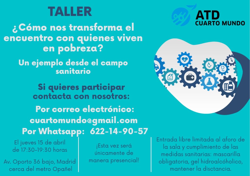 Nuestro invitado sera Daniel García Blanco, medico y aliado de Cuarto Mundo. A partir de varios proyectos en los que ha participado hablará de cómo nos transforma el encuentro con quienes viven en pobreza. También habrá un momento de debate y preguntas.