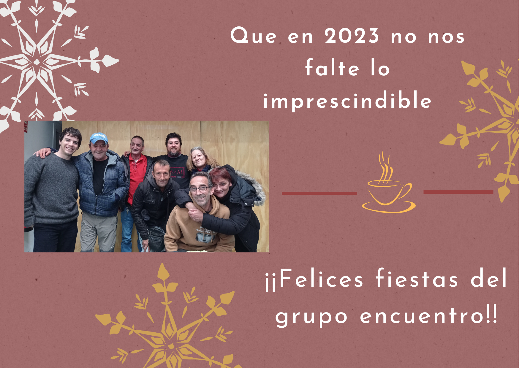 En la felicitación de fiestas de año poníamos “que no nos falte lo imprescindible”, y en ello estamos, intentando construir un espacio humano de encuentro, donde descubrirnos importantes, imprescindibles. Cada día le ponemos ganas porque nos negamos a que nos falte lo imprescindible, alguien al lado, un encuentro que nos haga más humanos frente a una sociedad individualista, capitalista, que nos deshumaniza.